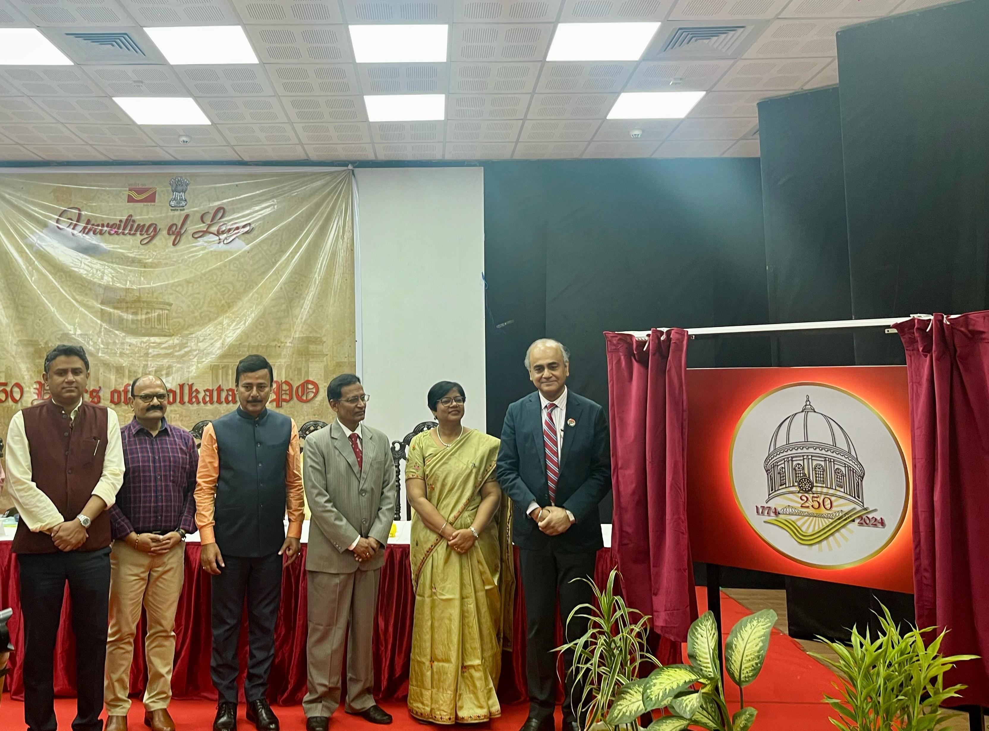 Marking a milestone: Unveiling the emblem of Kolkata GPO's 250 years of service and legacy by Shri Niraj Kumar, Hon’ble Chief Postmaster General, West Bengal Circle, with the grand presence of Col. Akhilesh Kr Pandey, PMG (North Bengal Region & Sikkim State), Smt. Shashi Shalini Kujur, PMG (South Bengal Region), Shri Rakesh Kr Singh, GM (PA&F), Shri Sanjiv Ranjan, PMG (Kolkata Region), Col. Arvind Varma, PMG (Andaman & Nicobar Islands) & Shri Supriyo Ghosh, PMG (Mails & BD). Here's to honoring tradition and embracing the future.